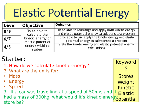 Energy Physics Gcse Revision Buddy Science Homework Help Ks4 from gcserevisionbuddy.co.uk Gcse physics how to use the formula and do calculations involving elastic potential energy. A spring is used to store elastic potential energy in many mechanical devices (like the shock absorbers in cars). Gravitational field potential energy is determined using newton's law of universal gravitation. Elastic potential energy is the energy stored in elastic materials as the result of their stretching or compressing. Spring potential energy example (mistake in math). The elastic energy potential has to do with the property of the elasticity of matter, which is the tendency to regain its initial shape abruptly after having been subjected to deformation forces greater than its force. The potential energy can be found using the formula The spring has been stretched x = 0.40 m from equilibrium.